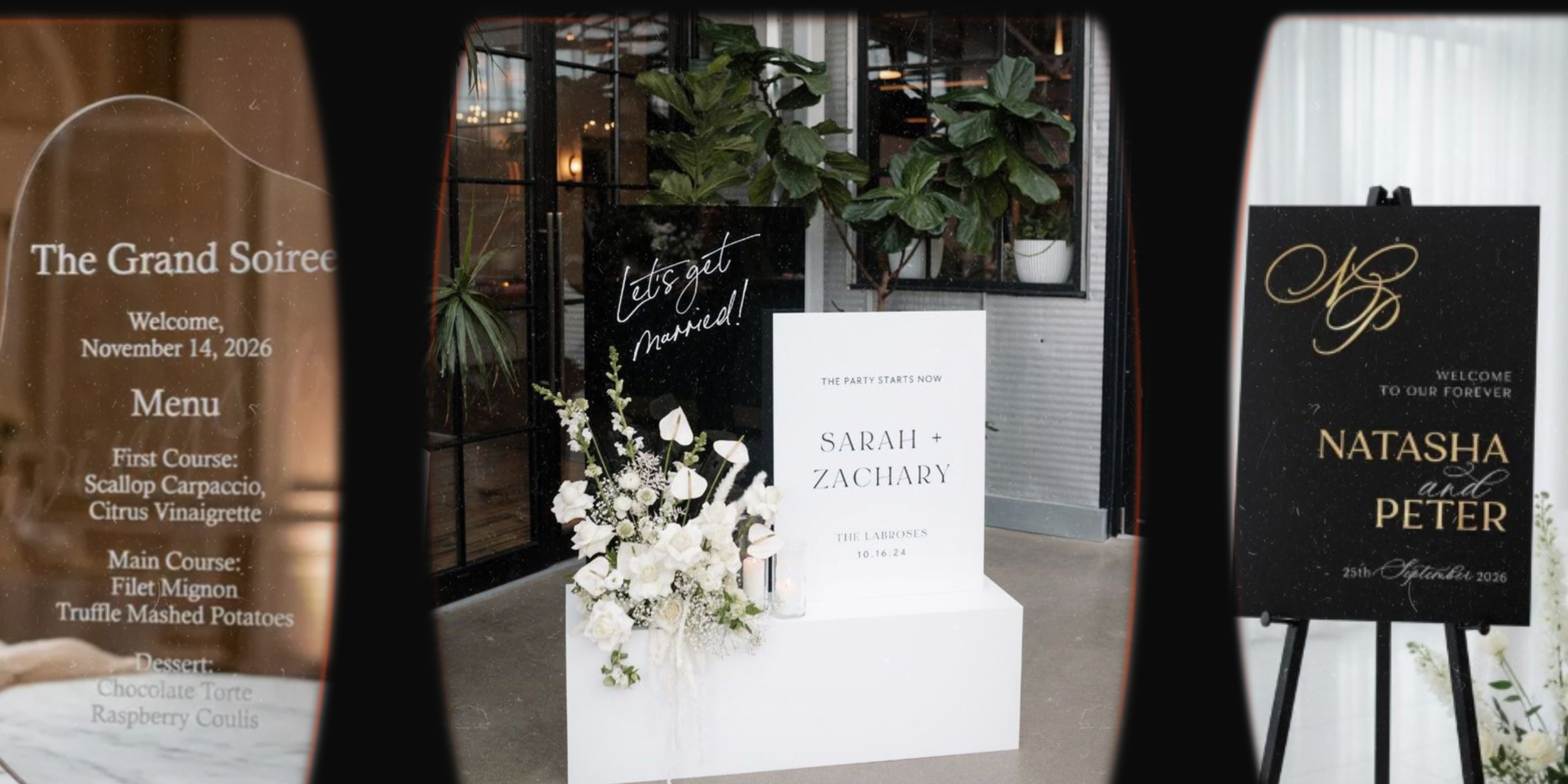 We create elevated, custom wedding signage designed to make a lasting first impression. From large-scale welcome displays to curated event details, our pieces blend design and function seamlessly.