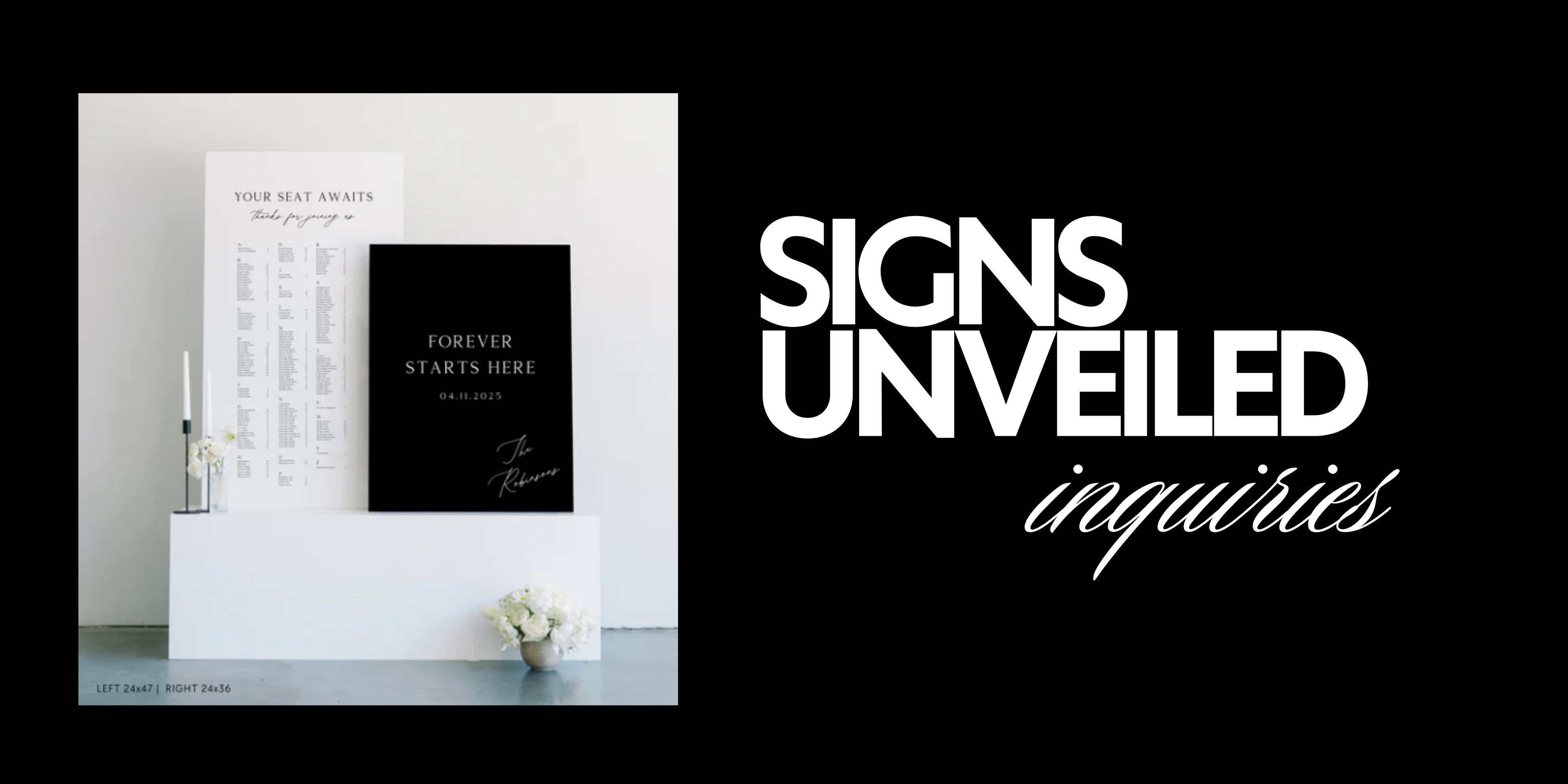 Our minimum spend for day-of signage begins at $1,800+. We are based in Boston, MA and open to travel anywhere within the U.S. ($3,000 out of state minimum for travel)